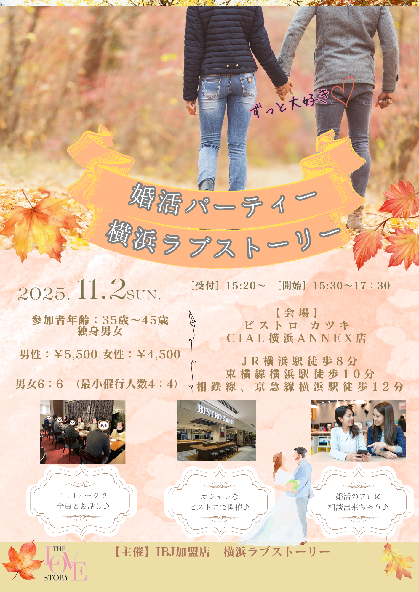 イベント2025年10月10日【35~45歳】婚活パーティー11月2日in横浜