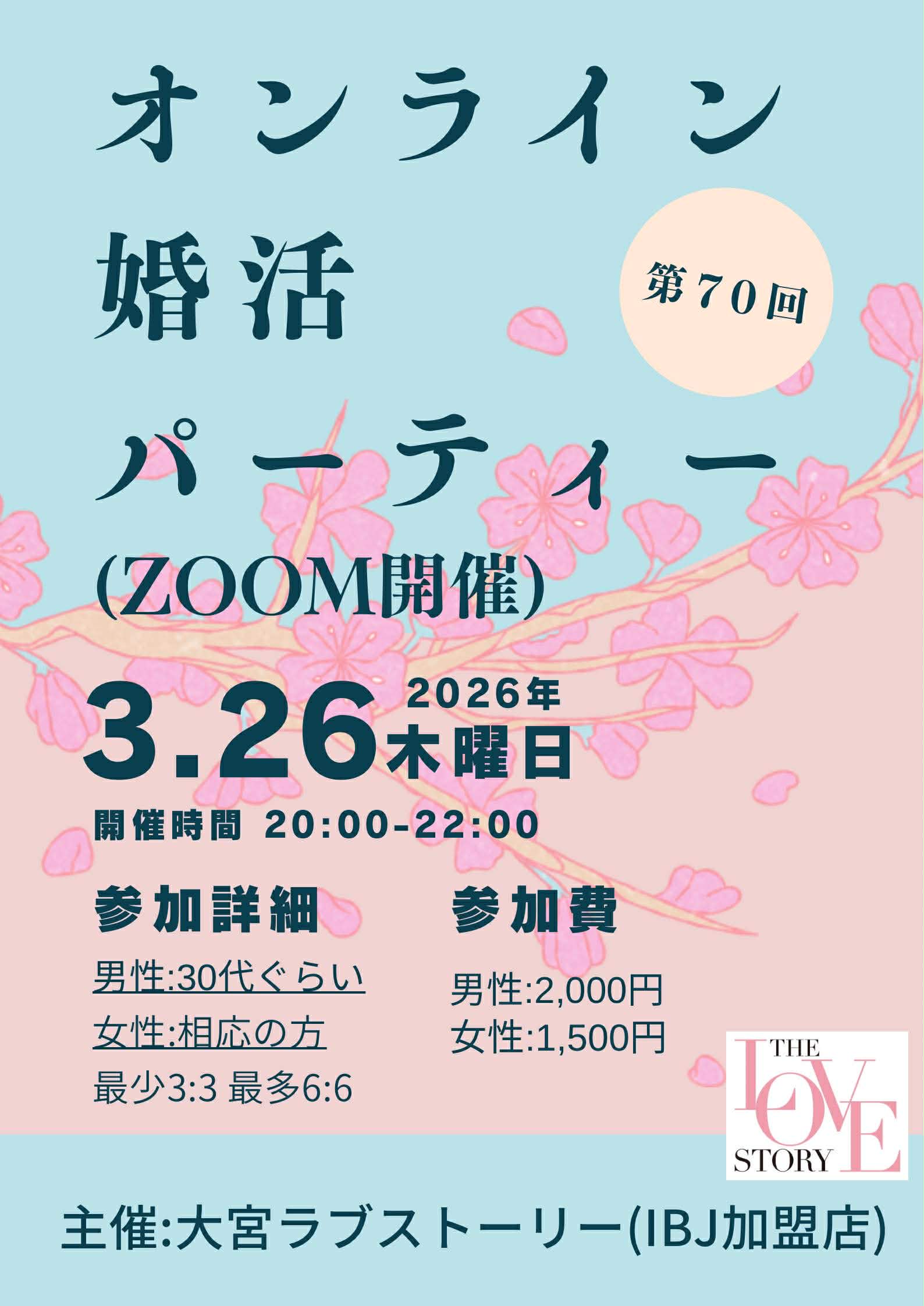 イベント2026年2月15日【30代】オンライン婚活パーティー3月26日in全国