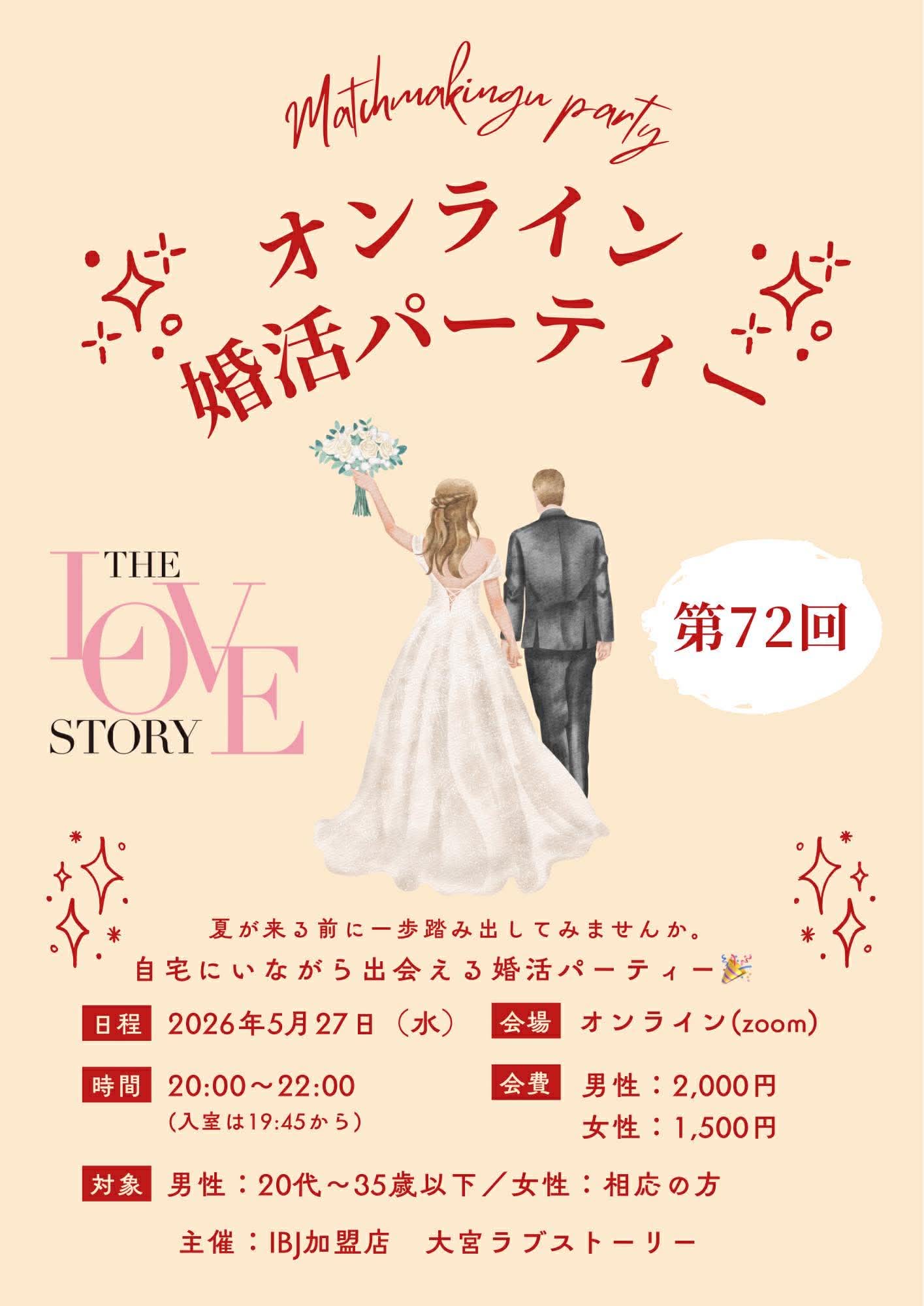 イベント2026年4月27日【20代〜35歳以下】オンライン婚活パーティー5月27日in全国